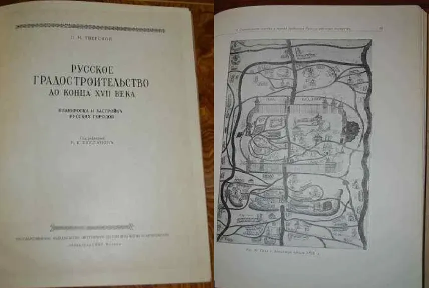 Л.М.Тверской, в своем труде детально рассмотрел применяющиеся в различных случаях градостроительные и архитектурные приемы, застройка первых русских городов и их благоустройство, распределение архитектурных сооружений, строительство парковых ансамблей и дворцов, и мн. др.