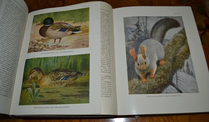 Особо стоит отметить богато иллюстрированный материал издания, над которым работали известные художники, анималисты и иллюстраторы: В.Ватагин, А.Комаров, Н.Кондаков, М.Далькевич и др.! Все цветные иллюстрации были отдельно изготовлены и помещены в издание на отдельных толстых листах!