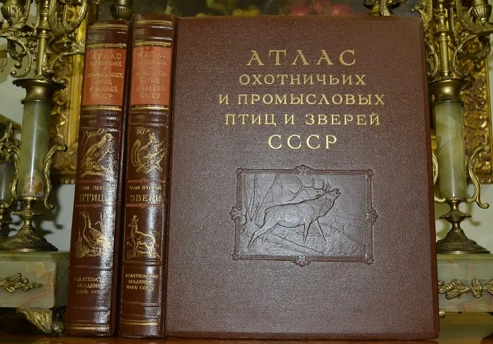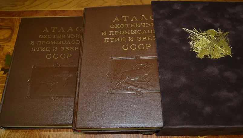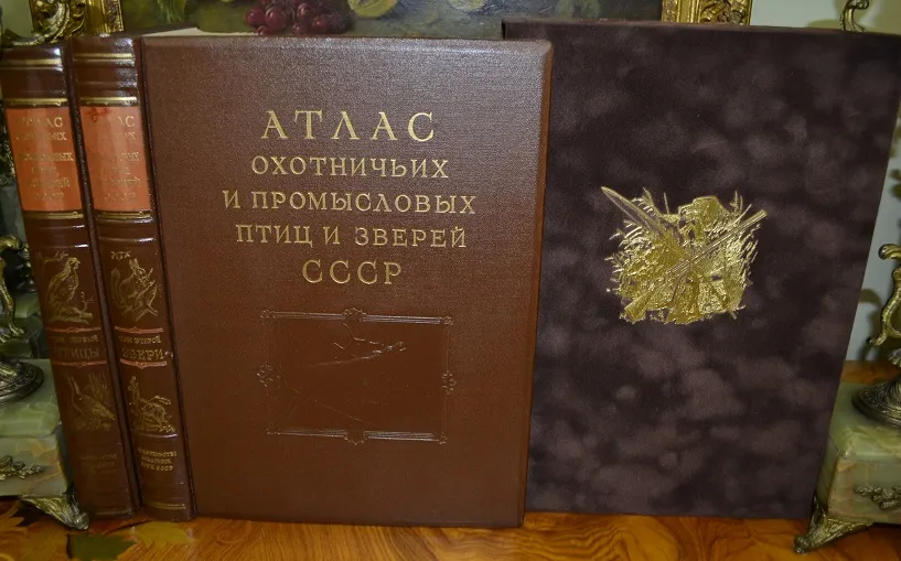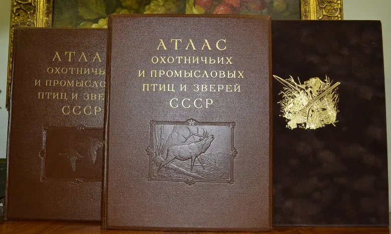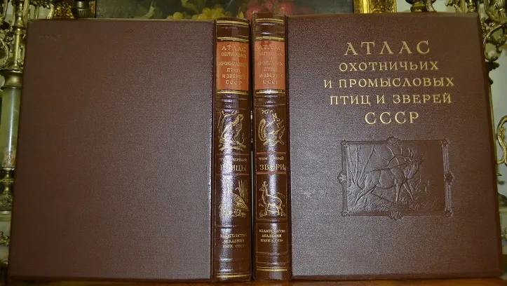 Лучшее издание выходившее в советский период - многолетний труд, под общей редакцией академика С.А.Зернова и академика Е.Н.Павловского. Издание вышло один раз /ограниченный тираж 10000шт.!/, за несколько лет до знаменитой "Настольной книги охотника- спортсмена">>>  Главной отличительной особенностью  "Атласа охотничьих птиц и зверей", стало то, что он оказался единственным  в своем  роде трудом - подробным описанием всей охотничьей фауны/!/, ценным и самым полным справочником/!/, подготовленным редколлегией Академии Наук и всех ведущих охотоведеческих хозяйств страны!