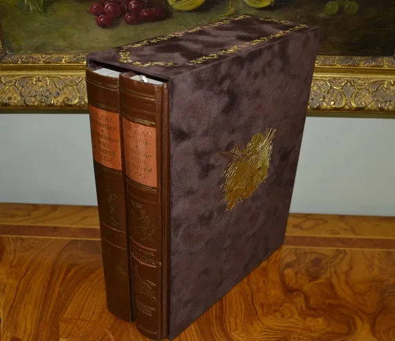 Сохранность   -  очень хорошая! Коллекционная редкость! Подарочный вариант! В издательских коленкоровых переплетах с золотым, цветным и конгреневым тиснением, и в бархатном стилизованном футляре с золотым тиснением! Увеличенный /бол. энцик.!/  формат: 31 х 26см., /вес 5 кг.!/, ляссе, том I – 371 с., ил., 66 л. ил.; том II –294 с., ил., 70 л. ил.. В издании представлены многочисленные цветные отдельные картины на отд .листах, рисунки в тексте, фототипии, схемы, планы, таблицы и пр.! Издание украшено и дополнено стилизованными зарисовками, концовками и пр, отпечатано на мелованной бумаге, иллюстрации отдельно выполнены на толстой высококачественной бумаге! Комплектный коллекционный /не читанный!/ экземпляр! Редкость!