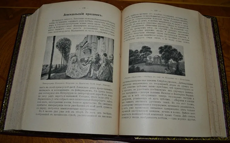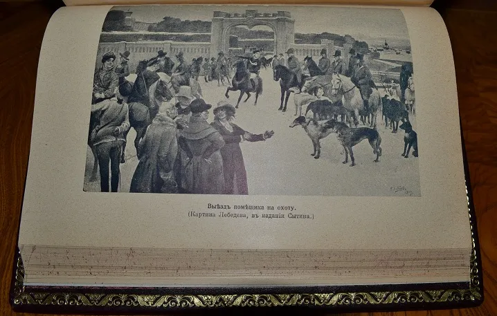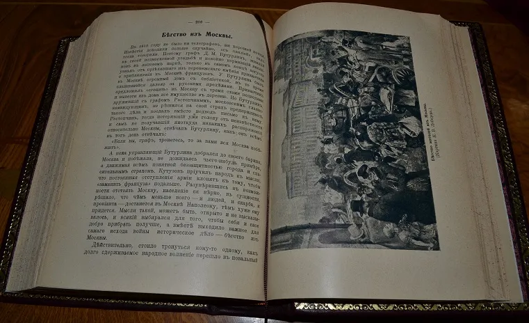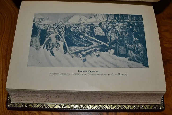 Сохранность - очень хорошая! Редкий коллекционный экземпляр с сохранением издательской обложки! В роскошном цельном кожаном переплете /высококачественная переплетная кожа, художественное оформление, ручная работа!/ с богатым золотым и конгревным /глубоким!/ тиснением, и в бархатном стилизованном футляре с золотым тиснением герба России! Увелич. /энциклоп.!/ формат: 23 х 16,5см., 366с.+ 392с., бинтовой корешок, цветные составные форзацы, золотая дублюра, тонированный обрез блока, шелковое ляссе! В издании представлено великое множество иллюстраций на отд. листах и в тексте, фототипии /картины известн. рус. худож.!/, рисунки, карты, портреты и мн. др.! Издание дополнено стилизованными заставками, виньетками и пр., отпечатано издание на плотной мелованной бумаге! Комплектное /чистое, не зачитанное!/ издание коллекционной сохранности!
