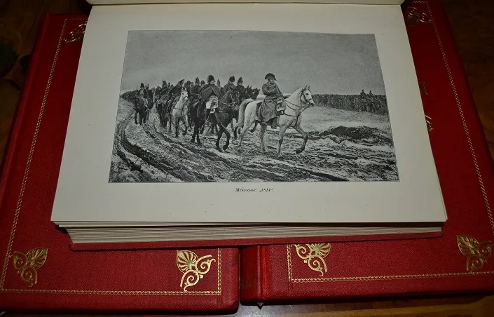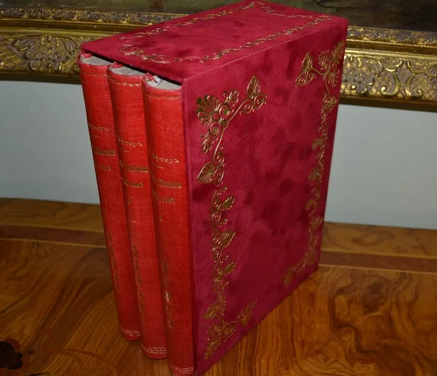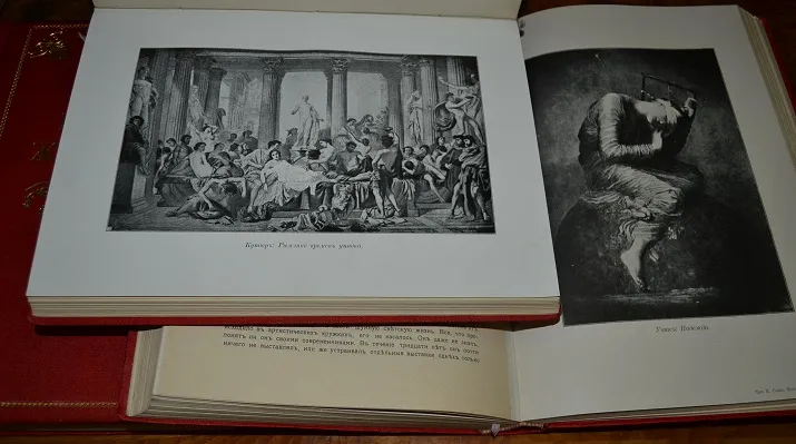 Сохранность - очень хорошая! Прекрасный коллекционный /не зачитанный, чистый!/ В трех коленкоровых переплетах эпохи (нач. ХХв.!) с богатым золотым и конгревным тиснением, и в подносном бархатном стилизованном футляре с роскошным золотым тиснением! Увелич. энциклоп. формат: 27 х 20см., 362+485+462с, крепкие (плотные) блоки, ляссе! В издании представлены многочисленные иллюстрации на отдельных листах (картины извест. худож.!), фототипии в тексте, рисунки, портреты, прилож., табл., и пр.! Отпечатано издание плотной мелованной бумаге, иллюстрации выполнены на глянцевой бумаге! Прекрасный коллекционный экземпляр! Редкость!