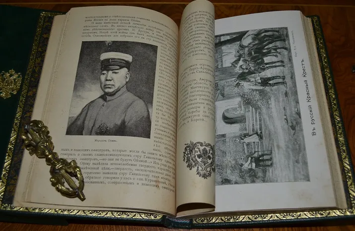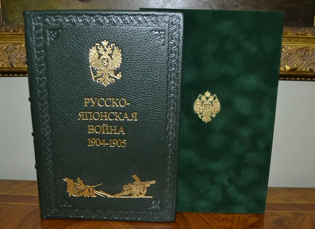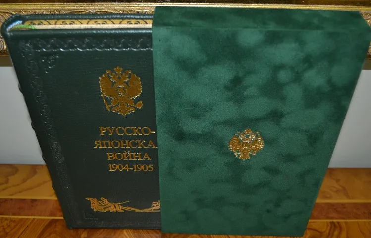 Сохранность - очень хорошая! Коллекционный экземпляр с сохранением издательской обложки! В подарочном цельном кожаном переплете /высококачественная переплетная кожа, профессиональная ручная работа, стилизованное тиснение!/, с богатым золотым и конгревным /глубоким, художественным!/ тиснением, и в бархатном стилизованном коробе с золотым тиснением герба России! Цветные составные форзацы с гербами, золотая дублюра, бинтовой корешок, увеличенный формат: 26 х 16м., тонированный обрез! В издании представлены фототипии и портреты на отдл. толстых листах, многочисленные рисунки, иллюстрации, расклад. карты, табл., прилож.! Издание дополнено стилизованными заставками и концовками, отпечатано на мелованной бумаге! Комплектный коллекционный экземпляр - подарочный вариант!
