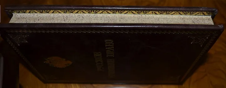 Сохранность - хорошая! В подарочном цельном кожаном переплете /высококачественная переплетная кожа, прекрасная ручная работа, художественное оформление переплета, золотой герб России!/, с богатым золотым и конгревным /глубоким!/ тиснением. Увелич. /энциклоп.!/ формат: 25 х 17см., 399с., цветные составные форзацы с гербами России, золотая дублюра, бинтовой орнаментальный корешок, шелковое ляссе. Отпечатано издание на плотной бумаге, местами пометки карандашом! Комплектное коллекционное издание! Редкость!