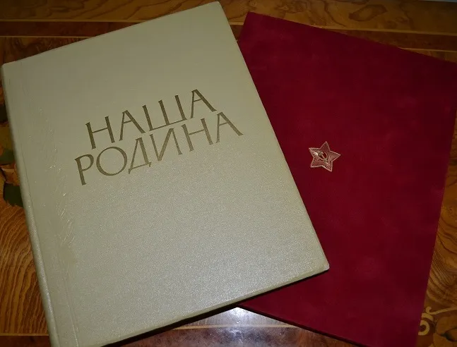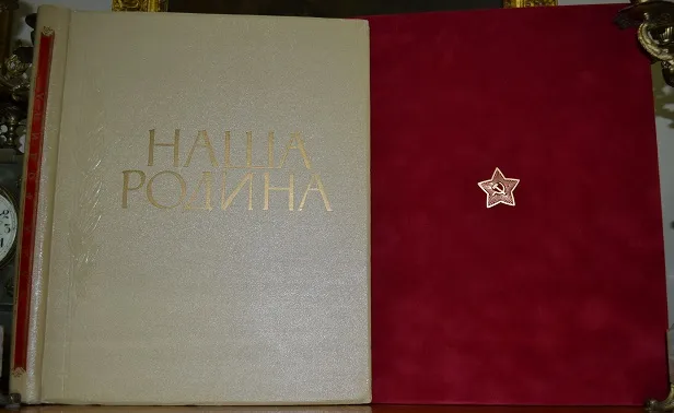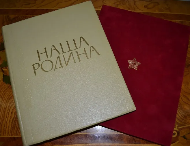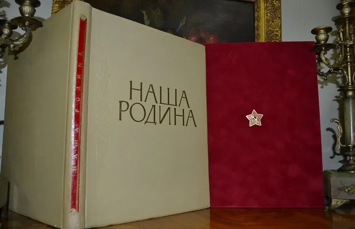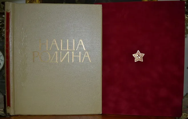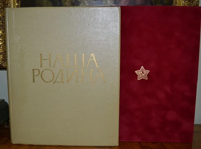 Одно из лучших красочный изданий советской эпохи - больше форматный подарочный альбом «Наша Родина», был впервые издан в 1957г. ограниченным тиражом! Текст издания специально дублирован на трех языках: немецком, французском и английском - показать красоту и величие самого великого государства в мире! В альбоме были собраны фотографии, представившие огромную территорию СССР, природу самых разных уголков страны, многонациональное население и его экономические достижения. Издание было построено так, чтобы показать те изменения, которые произошли в стране через 40 лет после Октябрьской революции!