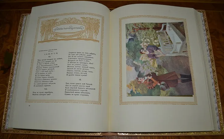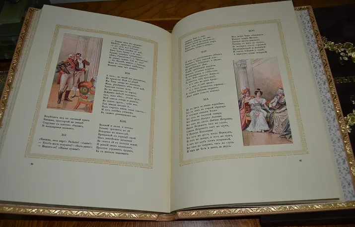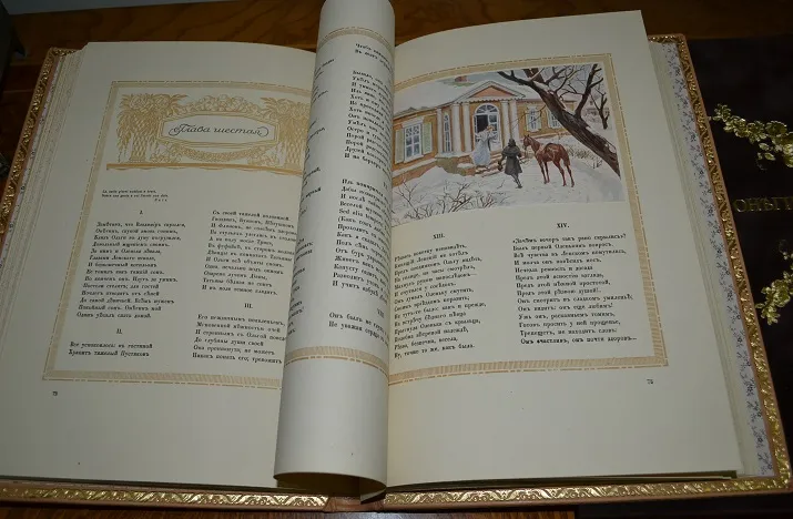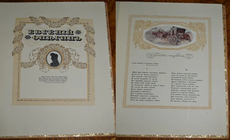Все работы над изданием "Евгений Онегин", полиграфия и печать, цинкографии и фотолитографии были сделаны на одной из самых известных типографий России - Р.Голике и А.Вильборг в Санкт-Петербурге, специализирующейся на высоко-художественной печати роскошно иллюстрированных изданий!