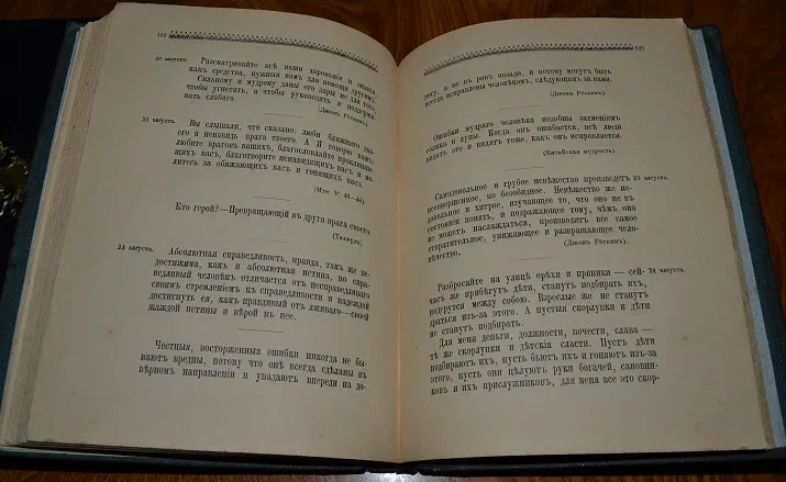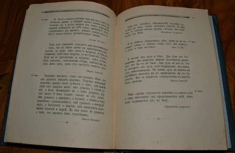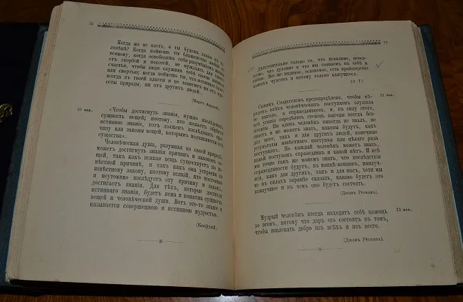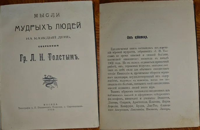Собрал эти мысли и систематизировал в виде афоризмов на каждый день, не кто иной, как сам Лев Николаевич Толстой! Мысли известных философов и мудрецов, великих военачальников и императоров, видных политиков и правителей, выдающихся ученых и писателей.. - мысли великих людей, собранные великим писателем - это поистине кладезь человеческой мудрости!