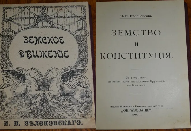 В своей книге "Земство и Конституция", автор И.П.Белоконский, описал историю реформ, земского движения и построению конституционного строя в России начиная с 1860-х годов XIX века вплоть до 1905 года. Автор замечает, что освободительное движение по характеру своему и методам таково, каков сам господствующий режим. И чем жестче власть предержащие подавляют это движение, тем хуже для всех, ибо тогда из рядов общественности выходят на первый план не носители светлых идеалов, а жестокие фанатики. Именно таким образом действовали власти в России!