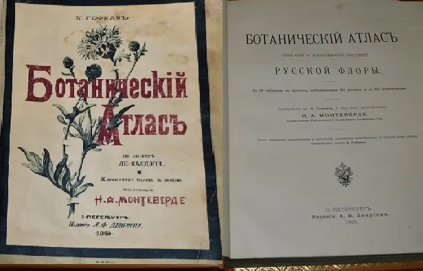Редкий историко-исследовательский труд по ботанике, вышедший впервые в 1906 году - больше форматный, роскошно иллюстрированный сборник, является дополненной автором перерабокой знаменитого атласа Карла Гофмана, который выходил в издательстве Девриена дважды: в 1897 и в 1899 годах. Монтеверде редактировал эти два издания атласа, а в 1906 году вышло третье издание, но уже в авторстве самого Н.А.Монтеверда - о всей флоре Российской Империи! Красочное издание вышло отдельным сборником в знаменитом издательстве А.Ф.Девриена, специализирующегося на выпуске богато иллюстрированных изданий с цветными отдельными картинами и высококачественной полиграфией!
