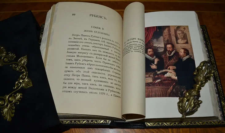 В начале XX столетия русский издатель, собиратель живописи и коллекционер изящных искусств Ювеналий Иванович Лепковский начал выпускать исторические очерки художников разных времен и стран. Серия вышла в роскошном полиграфическом варианте! Несмотря на небольшой количественный формат /каждый выпуск не более 79-80 стр./, оформлению каждой монографии могли бы позавидовать лучшие издатели Российской империи! Помимо высшего сорта плотной бумаги, которую использовали для печати художественных альбомов, в каждый выпуск было включено несколько роскошных цветных картин и иллюстраций художников с описанием, цветные тоновые листы и богатое художественное оформление! Серия печаталась в четырех городах империи: В Санкт- Петербурге, в Москве, в Одессе и в Киеве не большим тиражом, издано было один раз!