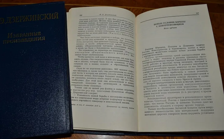 В статьях, опубликованных в 1897-1903гг., раскрывается деятельность Ф.Э.Дзержинского, как одного из руководителей социал-демократии Польши и Литвы, борца за объединение с РСДРП. Особый интерес представляют статьи, речи и письма периода 1917-1923гг. , где отражается деятельность Ф.Э.Дзержинского над создание новой структуры - Всероссийской чрезвычайной комиссии (ВЧК), которая была создана, под его личным руководством создана 7 (20) декабря 1917г. Представлены многочисленные приказы, речи собраний о выполнения работ в ЧК, разные доклады о деятельности ведомств ВЧК, ОГПУ Народного комиссара внутренних дел. Отдельными разделами представлены отчеты о борьбе с контрреволюцией, о защите государственной безопасности, о мятежах, о терроре, спекуляции и пр. Собран весь историко-исследовательский материал деятельности силовых ведомств и структур.