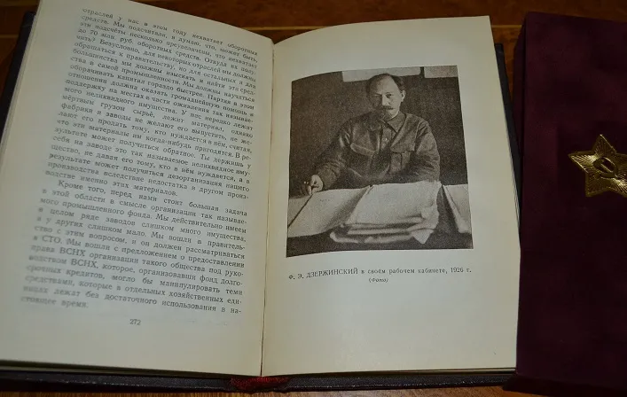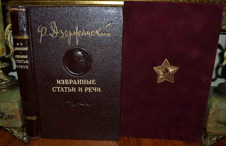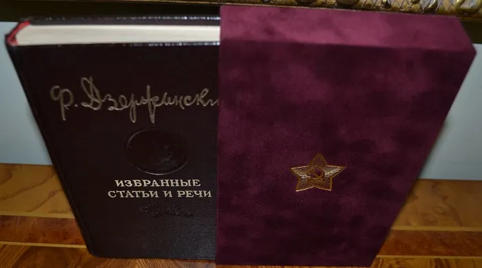 Настоящий сборник красно оформлен, в традициях сталинской эпохи - высококачественный коленкоровый переплет, спереди украшает барельеф Ф,Э,Дзержинского, золотое и цветное тиснение, для печати использовалась бумага высшего сорта, дополнена книга портретами, фотографиями, факсимиле. Представленный экземпляр из частного собрания, отличной сохранности - прекрасный подарочный вариант!