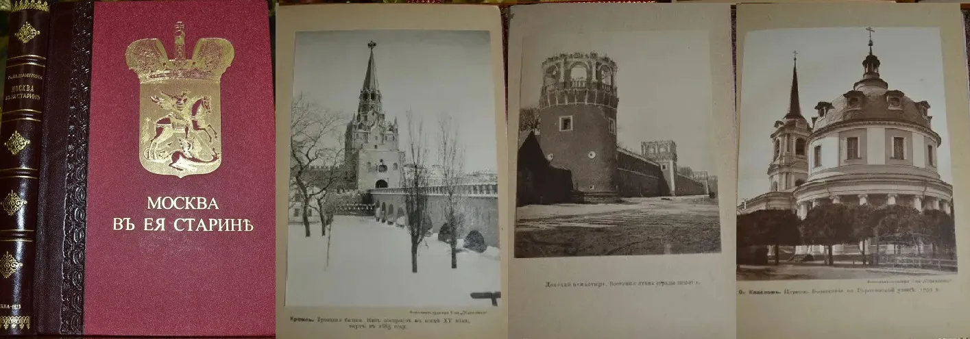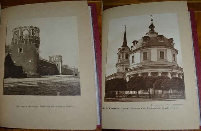 Ряд памятников, представленных в книге, был уничтожен в советское время, например, Чудов монастырь, Успенская церковь на Покровке, Красные ворота и др. Издание прекрасно иллюстрировано большим числом фото-тинто-гравюр, воспроизводивших изображения архитектурных памятников Москвы в высоком качестве.