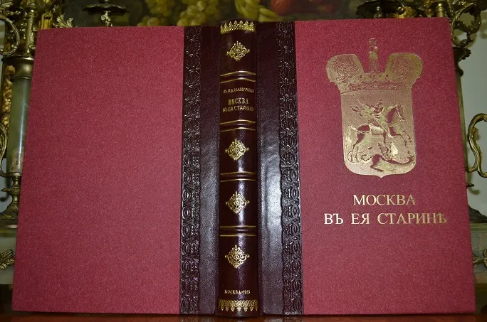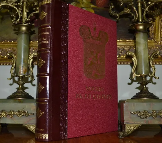 Сохранность - очень хорошая! В полукожаном переплете /стилизованное художественное тиснение, ручная работа!/, с богатым золотым и конгревным /глубоком!/ тиснением, стилизованное оформление! Увелич. формат: 25 х 18см., цветные составные форзацы с гербами Москвы, шелковое ляссе! В издании представлены многочисленные иллюстрации и фототипии вклейки в тексте и на отд. листы плотной /паспорту!/ бумаги, рисунки, табл. и пр.! Издание отпечатано на плотной мелованной бумаге!