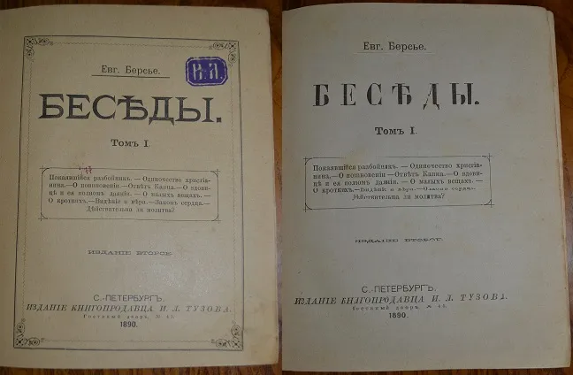Полный перевод на русский язык бесед реформаторского проповедника Евгения (Эжена) Берсье, вышедший в знаменитом книгоиздательстве И.Тузова!