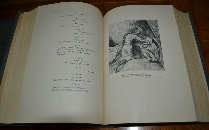 Издание вышло под общей редакцией С. С. Динамава и А. А. Смирнова, оформление книг, титульные страницы, заставки, концовки и переплет выполнены по рисункам художника Г. И. Фишера. Собрание вышло в 2-х томах, и представляют лучшие из русских переводов произведений Шекспира - трагедий и комедий.