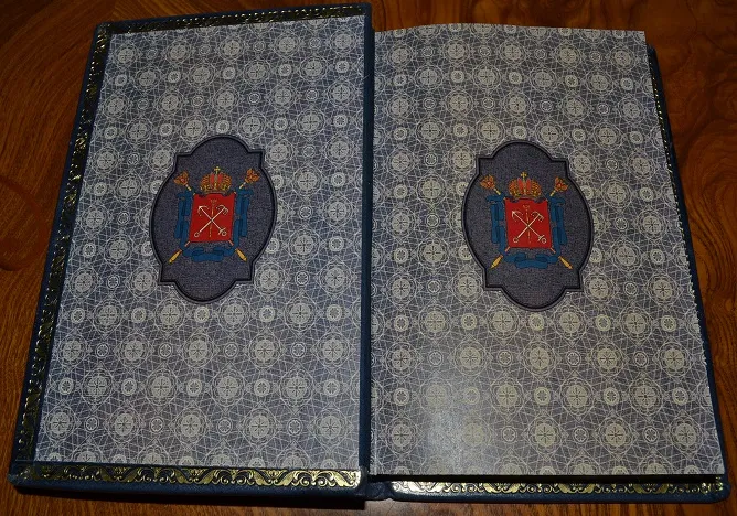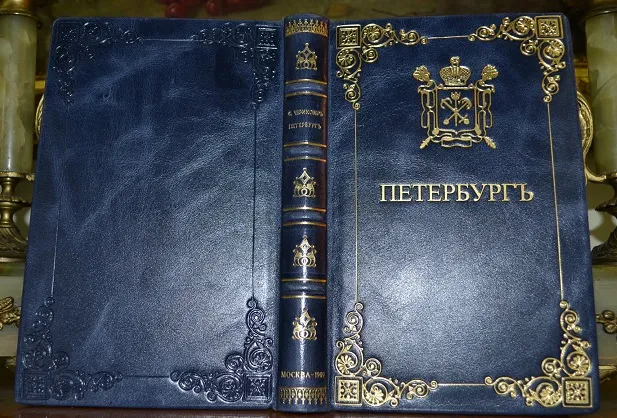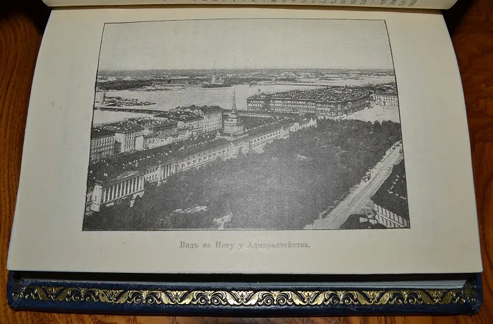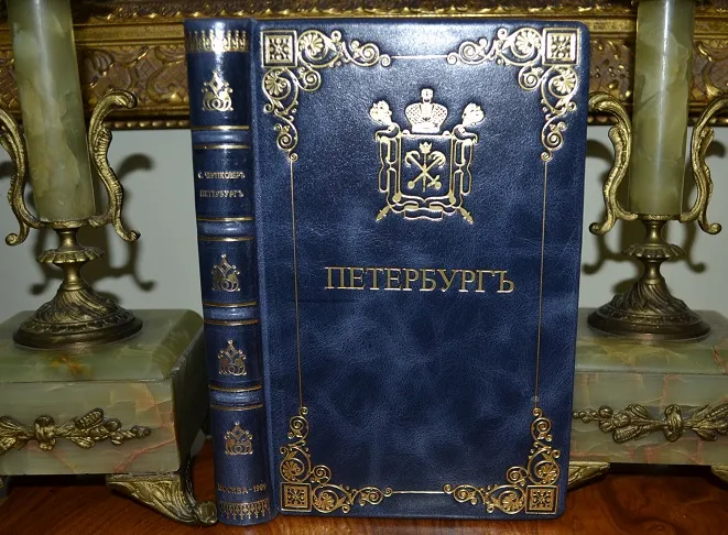 Сохранность - очень хорошая! Комплектный коллекционный экземпляр в цельном кожаном переплете /высококачественная переплетная кожа, ручная работа, французский переплет!/, с богатым золотым и конгревным /глубоким!/ тиснением, художественное стилизованное оформление переплета! Формат: 21 х 15см., 219с., цветные составные форзацы с гербами СПб., золотая дублюра, цветной обрез блока, шелковое ляссе, бинтовой корешок. В издании представлены многочисленные иллюстрации, фототипии, портреты, карты, раскладной план города, прилож. и мн. др.! Подарочное исполнение!