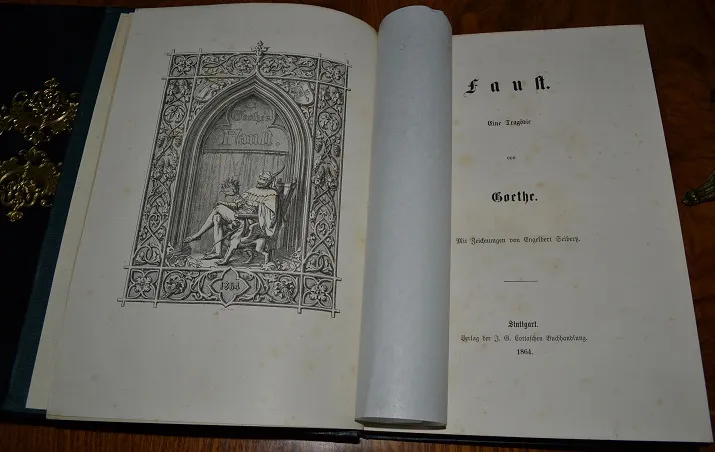 Знаменитая трагедия Гёте "Фауст" на языке оригинале - редко встречающееся издание 1864г. с прекрасными гравюрами Э.Зейбертца!