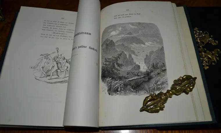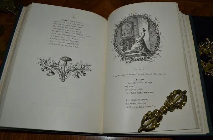 Великолепное оформление - издание украшено отдельными гравюрами знаменитого немецкого художника Энгельберта Зейбертца, исполненных в технике гравюры А.Шлейхом и М.Штортцем, а также множество великолепных иллюстраций в тексте, зарисовок, богатых орнаментальных рамок, виньеток, заставок, буквиц и специального особого шрифта!