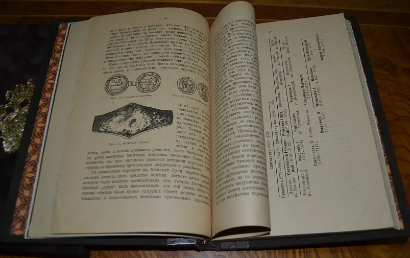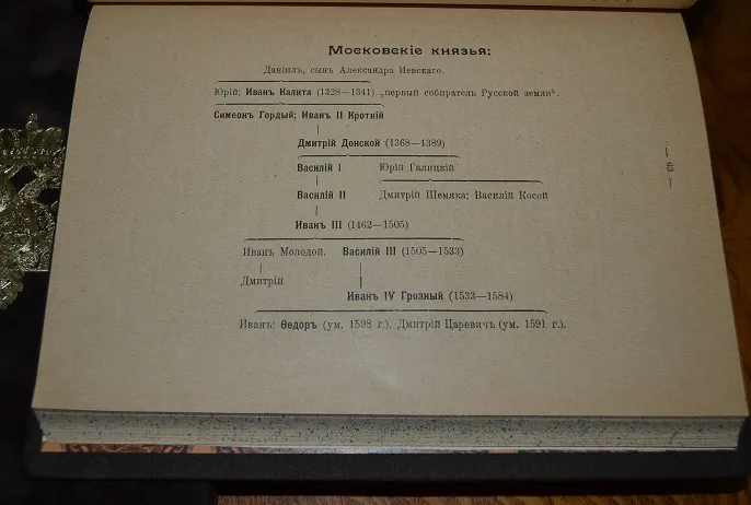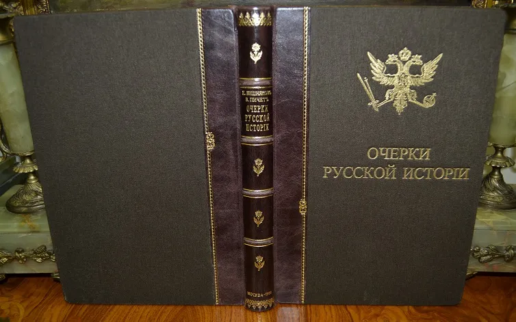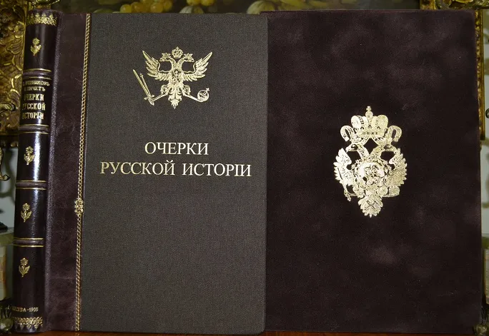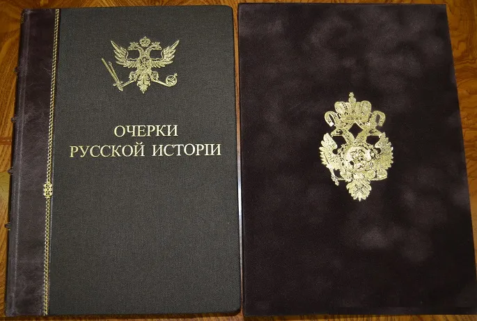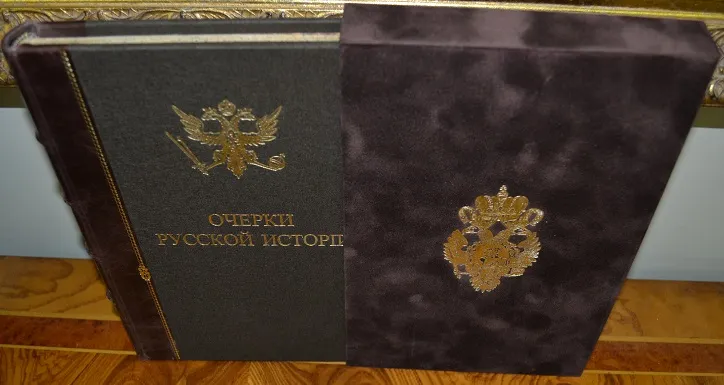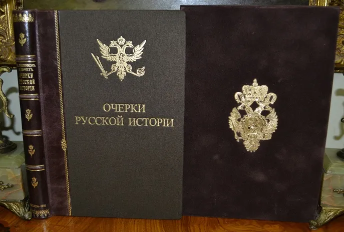 Сохранность - хорошая! ! В полукожаном переплете с сохранением издательских обложек, с богатым золотым тиснением и в бархатном стилизованном футляре с золотым тиснением герба России! Увелич. /энциклоп.!/ формат: 25 х 17см., 282с., цветные составные форзацы, бинтовой корешок, шелковое ляссе, тонированный обрез блока! В издании представлены иллюстрации, фототипии, карты, портреты, схемы, таблицы с родословными русских князей, прилож. и пр. /Местами, на некоторых листах есть пометки. Отпечатано на мелованной бумаге! Комплектное коллекционное издание!