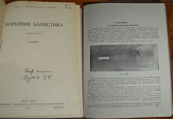 Многолетняя и, долгожданная работа для отечественной военной промышленности - ценный научно-исследовательский материал по баллистике, описывающий баллистические характеристики, процессы стрельбы, прицельные приспособления стрелкового оружия и ракетной техники, вопросы бомбометания, кучности стрельбы, их вычисления, устройства стрелкового оружия и мн. др.. Авторы труда известный ученый, военный конструктор, генерал, профессор Венцель Д.А., и доцент Шапиро Я.М.